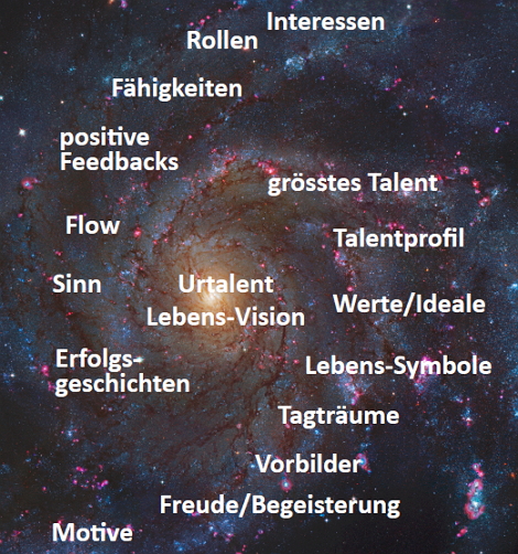 Wo „Flow“ (Fluss) entsteht – was Freude macht - Kindheitsträume, Kindheitspläne - berufliche Erfolge - Referenzen - persönliche Rückmeldungen - Motive - Freuden und Fähigkeiten - Erfolgs-geschichten - Synchronizität und Resonanz in der Aussenwelt – innere Reise zum Weisen u.a.